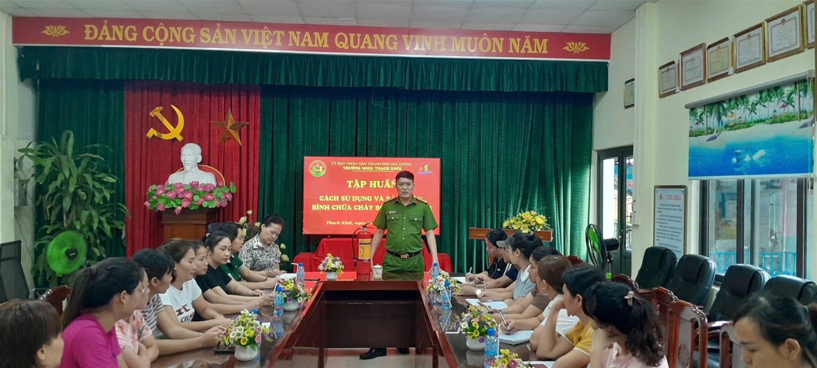 Chiều ngày 16/6/2025. Trường MNCL Thạch Khôi đã tổ chức tập huấn phòng cháy chữa cháy, cứu nạn cứu hộ cho 100% CBQL, GVNV của nhà trường. Do các đồng chí Cán bộ Đội PCCC, Công an phường Thạch Khôi bồi dưỡng.
