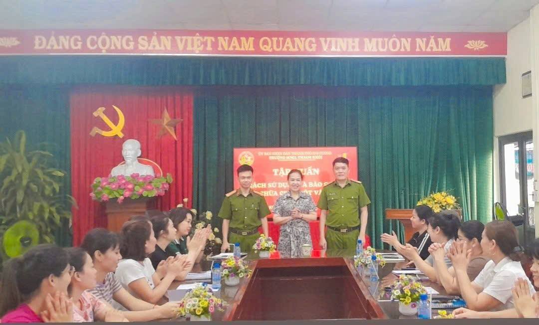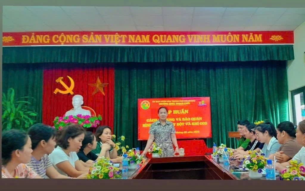Buổi tập huấn không chỉ cung cấp kiến thức cơ bản về công tác PCCC và CNCH mà còn giúp đội ngũ CBQL, GVNV nắm bắt được những kiến thức sử dụng, bảo quản bình chữa cháy bột - khí CO2, xử lý tình huống khẩn cấp, bảo đảm an toàn tối đa cho các con trong mọi tình huống.